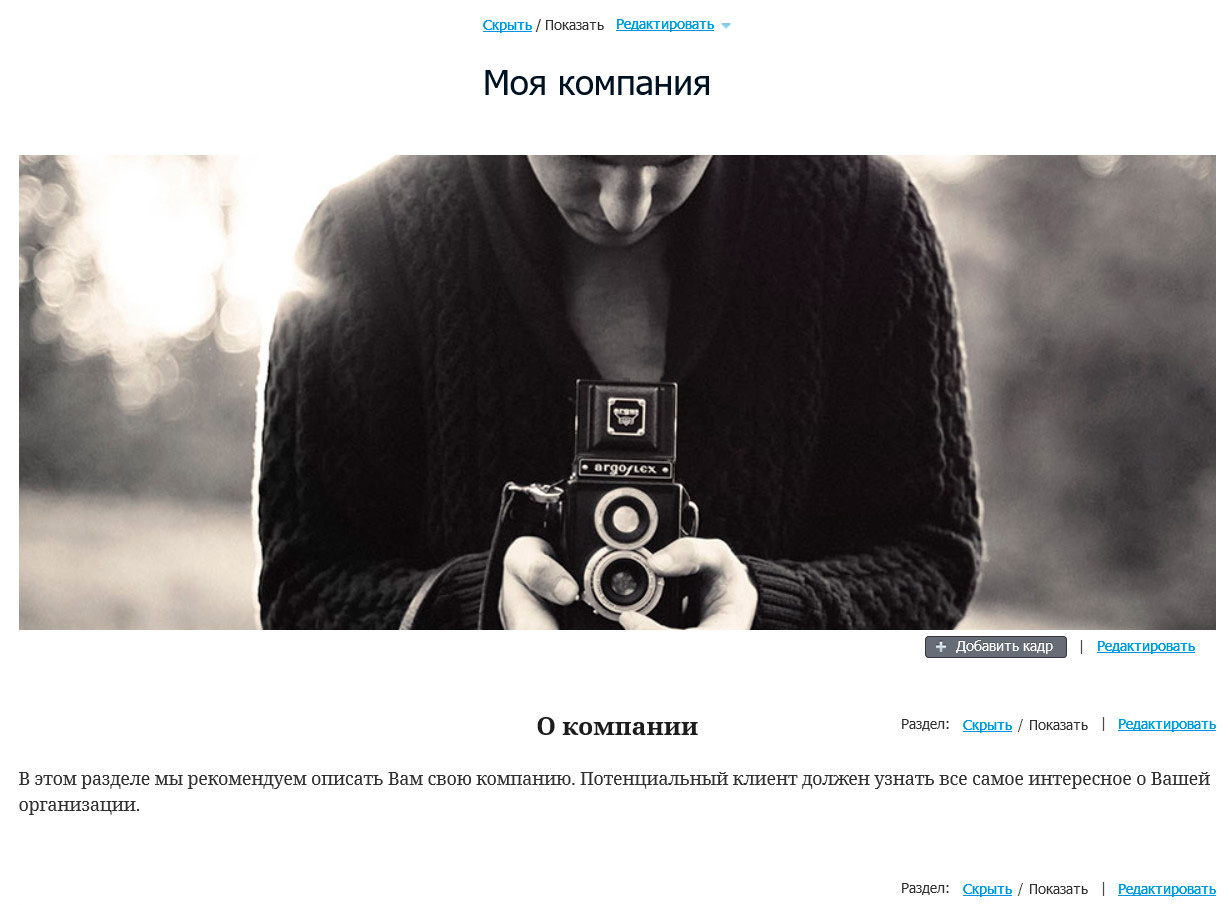 Выбрали шаблон - далее попадаете в редактор, где вы из различных блоков конструируете свою страницу, пишете свой текст, ставите свои ссылки и изображения. Ненужные блоки скрываете.