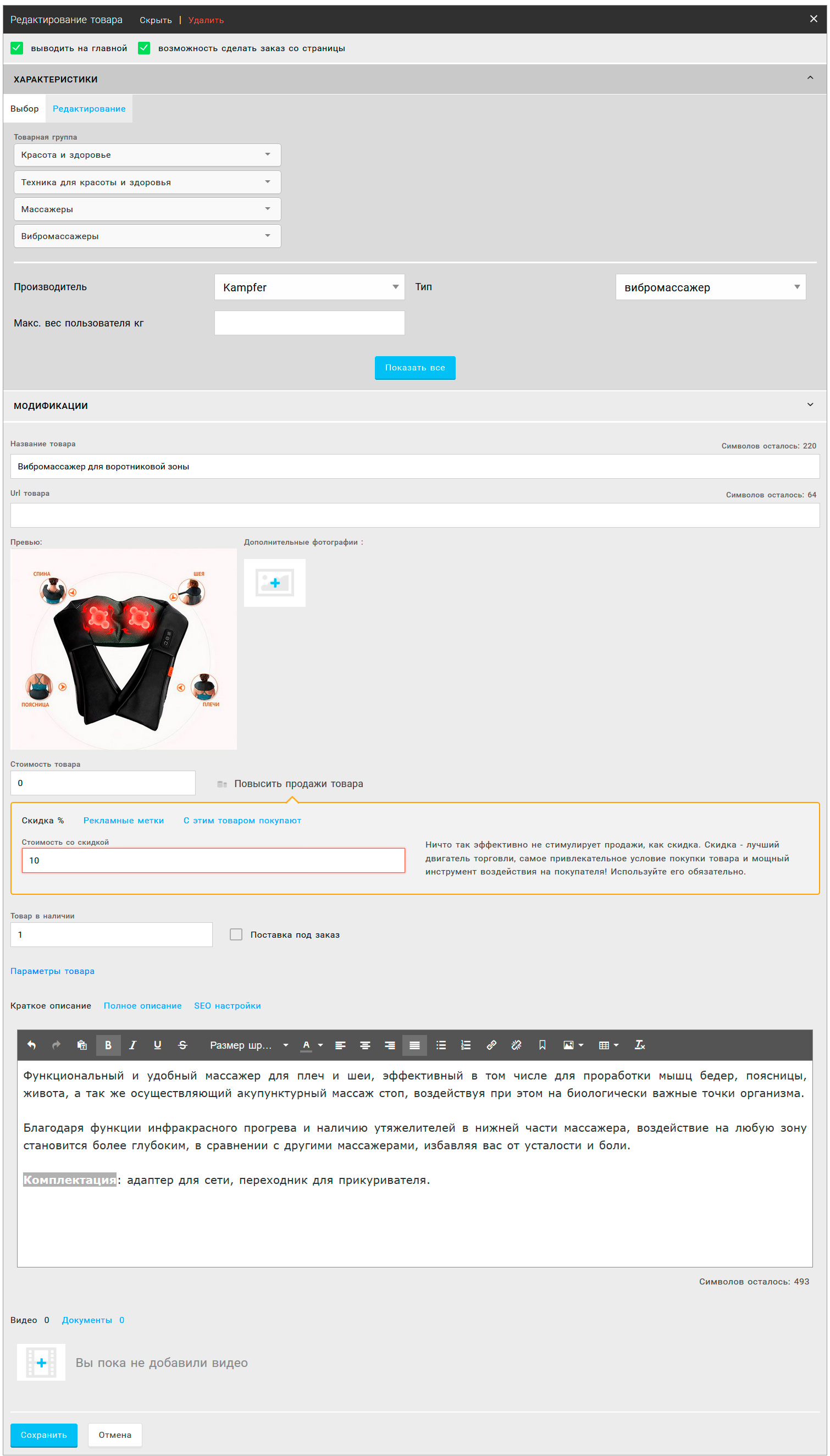 Все просто и интуитивно понятно, как наполнение страницы в соцсети. Вот так, например, выглядит добавление товара (скриншот кликабелен).