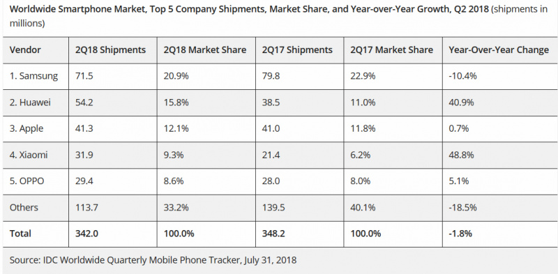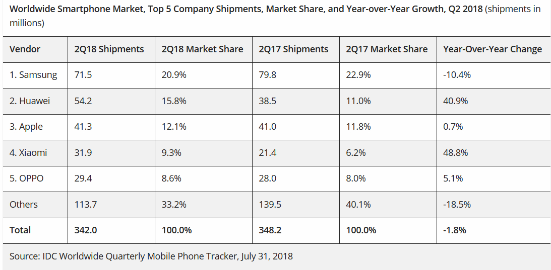 Вообще-то закономерный результат для Samsung. Причина - крайне не удачные модели Samsung S8. У моей семьи было три телефона - два S8 и один S8+. Все три разбились в течении полугода. И как-то обидно стало, что я выкинул на ветер 3 тысячи долларов за полгода. Теперь Samsung обхожу стороной. Взял Xiaomi Mi A1 быстро на временную замену. А сейчас не нарадуюсь. Все что мне нужно работает. Стоил копейки - сломается не жалко. За свои деньги просто отлично! Понятно почему у xiaomi рост продаж.