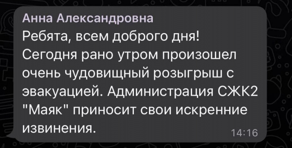 Впоследствии в администрации «Маяка» сказали студентам, что это был «чудовищный розыгрыш с эвакуацией» и принесли извинения.