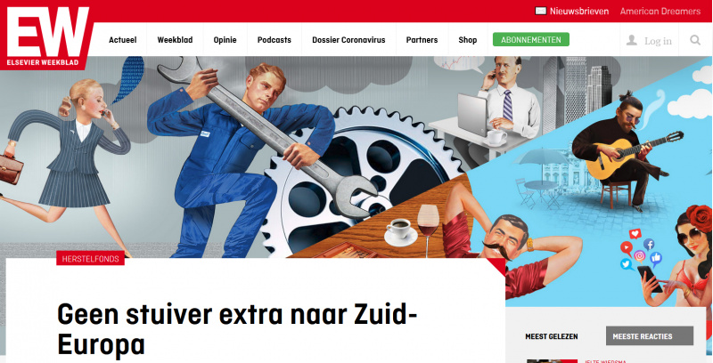 Под таким заголовком - "Никаких дополнительных денег в южную Европу!" - вышла статья в популярном нидерландском еженедельнике. ЕС планирует выделить по полтриллиона евро экономикам Италии и Испании, порядка 30 миллиардов на это должна будет дать Голландия, ну и автор статьи считает, что нечего этим странам выделять деньги, потому что, мол, их экономическая отсталость по сравнению Германией, Францией и северянами - преувеличена, госдолг у них не такой большой, так что, мол, пусть лучше занимаются экономическими реформами, чем проедают деньги ЕС.