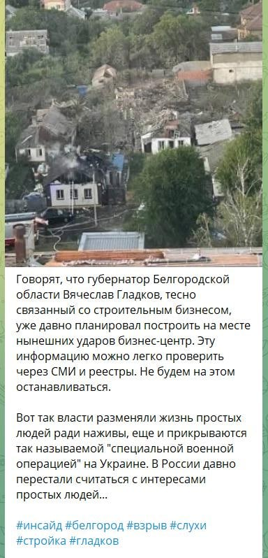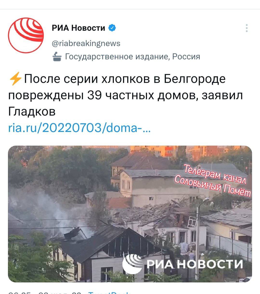 Это не мы 😂 «После этого Минобороны РФ заявило, что удар по Белгороду ракетами «Точка-У» с кассетными боеприпасами и беспилотниками Ту-143 нанесли ВСУ, и обломки одной из украинских ракет, сбитые ПВО, упали на жилой дом.» кому будем верить? 😂