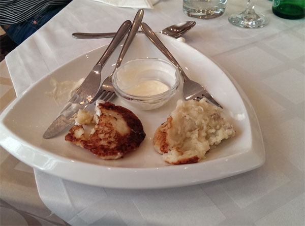 За все это великолепие нам насчитали порядка $100 (вино стоило что-то в районе $30), что было более чем разумно, потому что в той же Ницце за подобное насчитали бы где-нибудь 300 евро. Но, не спорю, сырники были бы там несколько получше, хотя и поменьше.