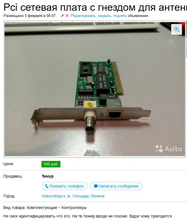 Вот вы все смеетесь, а я недавно себе такую искал, только под ISA , но терминатор мне был понятно не нужен, а вот вод витую пару разъем обязателен. Для чего интересуетесь ? Чтобы подключить к сети свой ретро-комп на 486 и на него ретро-игры закидывать без проблем, без помощи CD-ROM и тем более дискет. Вообще, если кто не знает, есть замечательный сайт