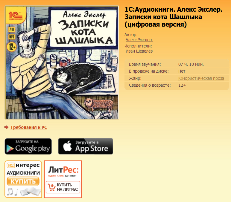 Издательство "1С: аудиокнига" выпустила новую аудиоверсию моих "Записок кота Шашлыка".