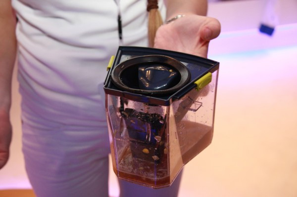 Показали новейшую модель пылесоса с водяным фильтром. Как известно, это самая удобная технология: поступающая в пылесос пыль осаждается в воде, и потом нужно просто вылить воду и промыть емкость. Вот как это тут действует.