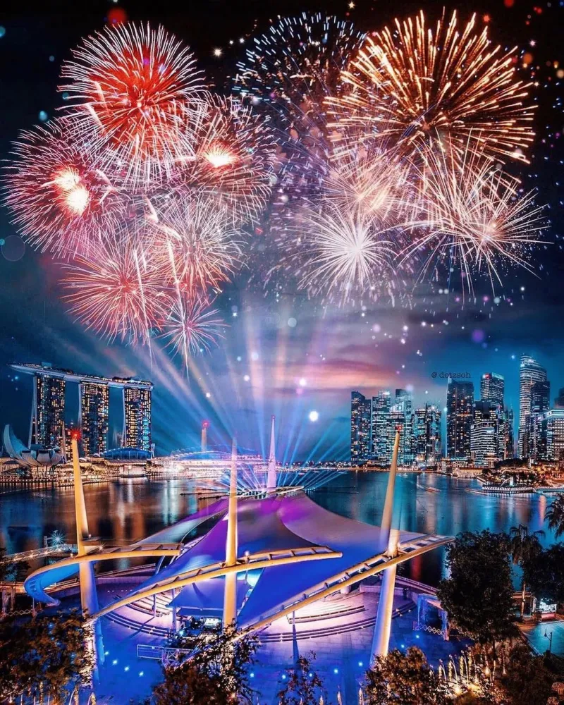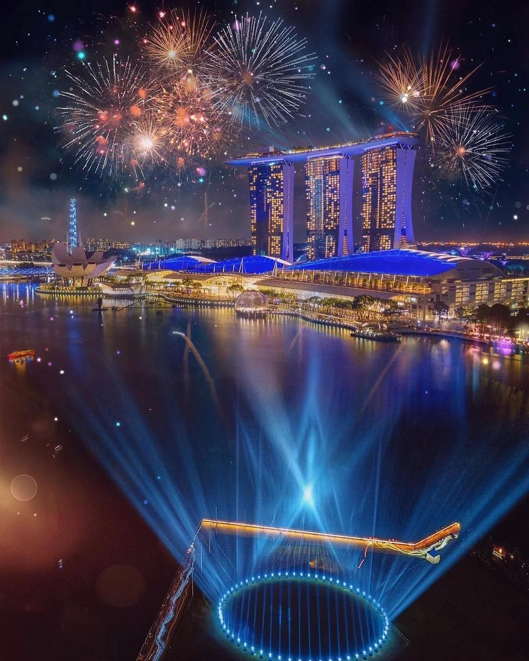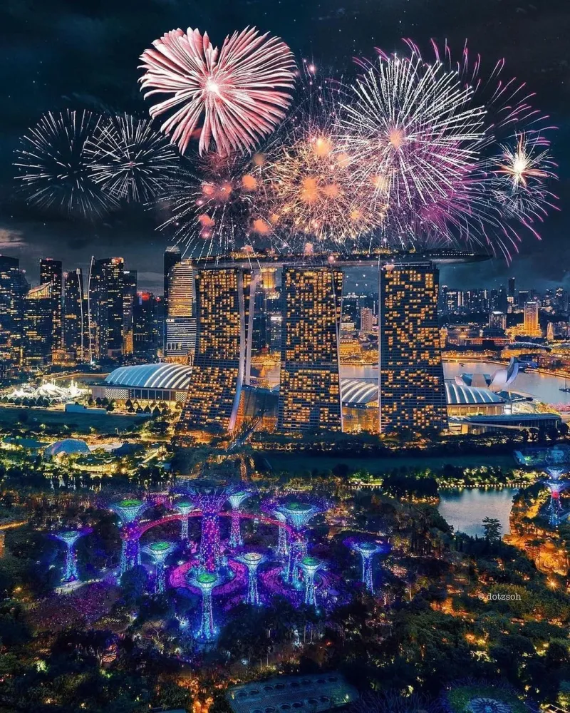 Ну то есть даже не отредактированно, а просто прифотошопили к панорамам салют. Он даже территориально на "фото" не над марина бей. Ну и с масштабами сильно перегнули, марина бей сэндс, это не 9ти этажка, чтобы на её фоне салют был такого размера.
