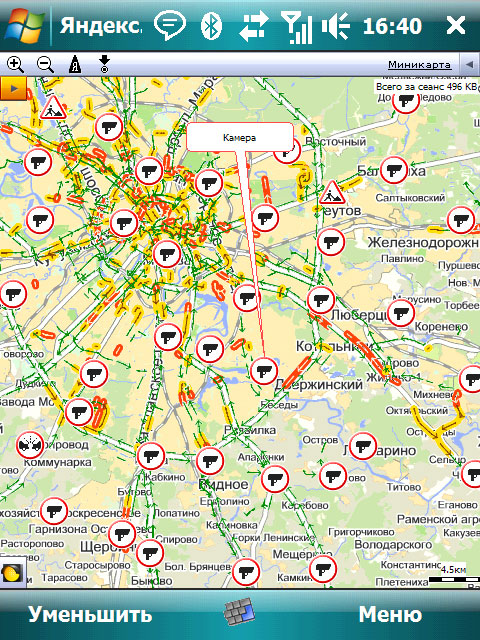 С одной стороны, конечно, информация очень полезная. Но с другой - все эти значки камер жутко мешают. Порылся в настройках - сразу не нашел, как отключить. Но потом все-таки нашел. Оказывается, все эти камеры можно убрать опцией Вид - Очистить карту. Тогда пробки остаются, а значки исчезают. И снова они появятся только при следующем сеансе. Так что все хоккей.