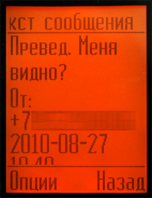 Ну, в общем, в выдвинутом состоянии экран, конечно, заметно информативнее, особенно в плане SMS-ок. С двумя строчками пользоваться SMS было совсем тяжко.