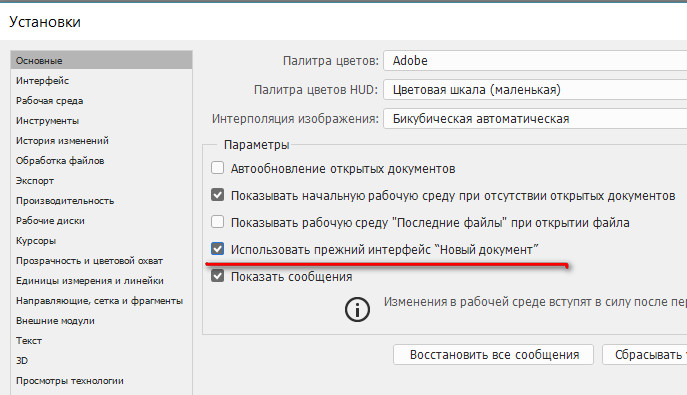 И, кстати, галку с "Показывать начальную рабочую среду при отсутствии открытых документов" тоже можно убрать, кому эта новая штука мешает (мне - мешает).