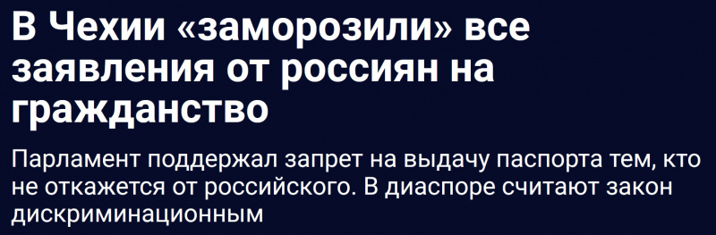 А чехи, таким образом, во-первых, фактически просто прекращают выдачу гражданств россиянам, а, во-вторых, серьезнейшим образом осложнят жизнь владельцам постоянного вида на жительство в Чехии, у которых закончатся российские паспорта.