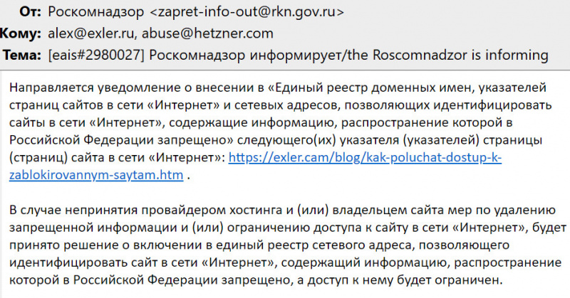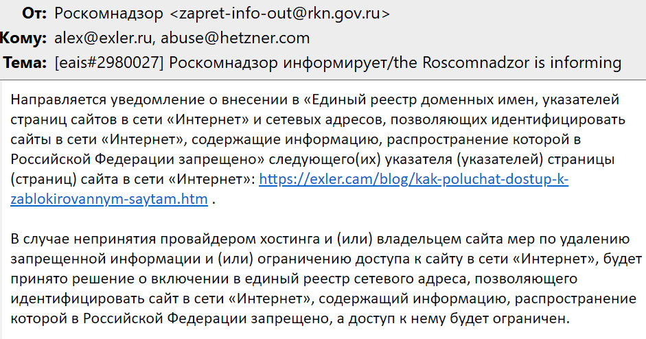 P.S. Мне нравится, как эти цидульки от Роскомговна мне форвардит немецкий хостер. Они пишут "Мы понятия не имеем, что это за херня, мы на нее не собираемся реагировать, тебе просто для сведения".