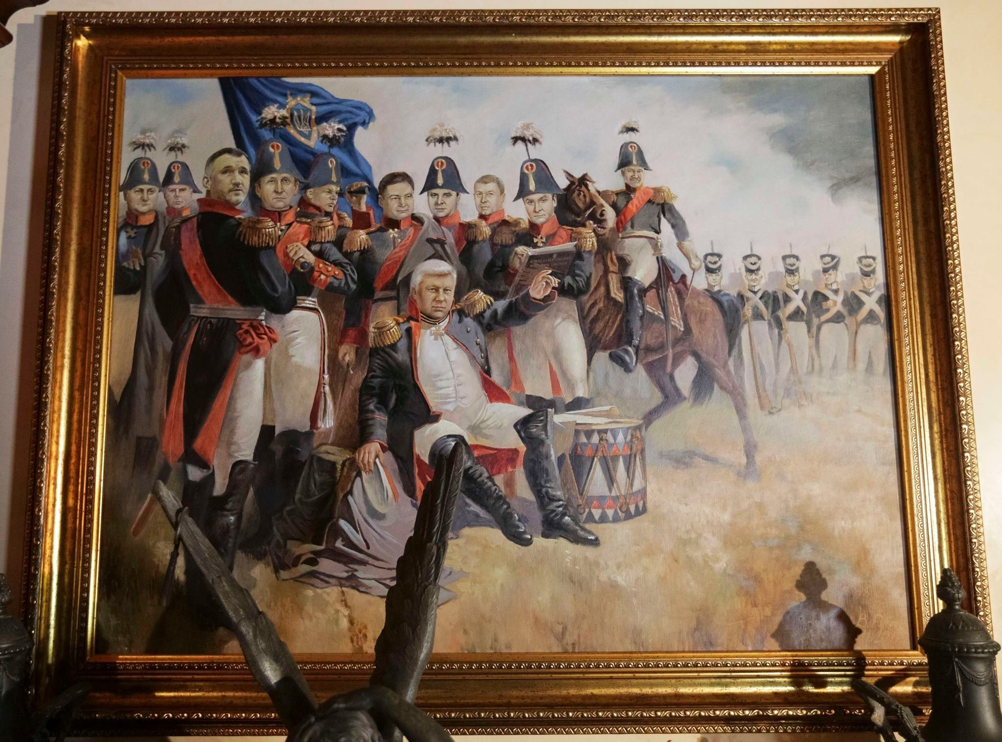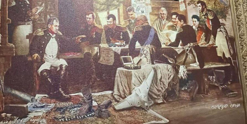 На кадрах запечатлены портреты самого Булгакова, а также картины с Шойгу и другими чиновниками Минобороны. Одна из картин выполнена по мотивам «Совета в Филях» художника Алексея Кившенко. На ней Шойгу изображен в роли генерала Михаила Кутузова, его бывший заместитель Руслан Цаликов — в роли генерала Михаила Барклая де Толли. На картине также присутствуют экс-заместители министра обороны Татьяна Шевцова, Тимур Иванов и другие чиновники.
