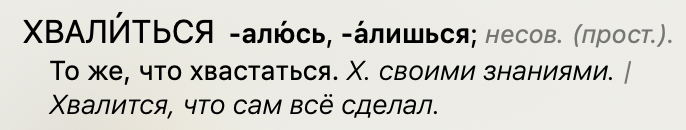 кому и перед кем. Он хвастался соседям своей силой. Марья Дмитриевна... хвасталась перед Лаврецким, что одна воспитала детей своих (Тургенев).