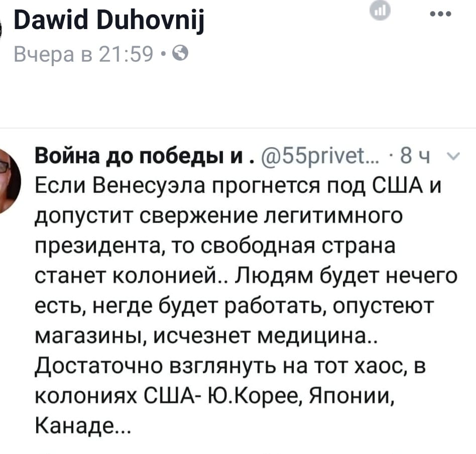 А вот, например твиттер Хуану Гуаидо, где тот поддерживает отказ возврата 1,2 млрд $ Венесуэле банком Англии.
