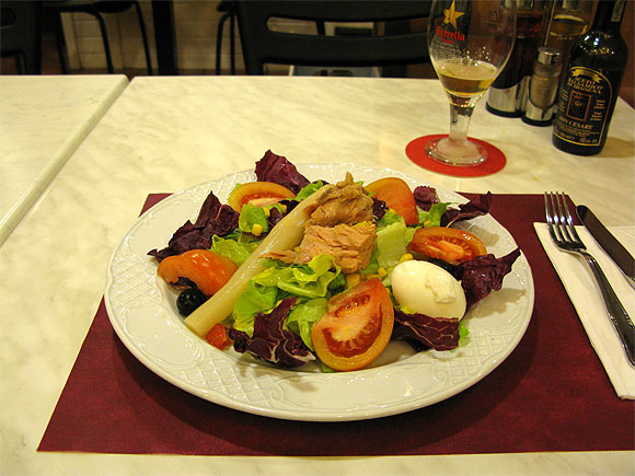 Дреесинг - стандартный. Уксус + обильно залито оливковым маслом. Других дрессингов по умолчанию в Каталонии не предлагают. 😄