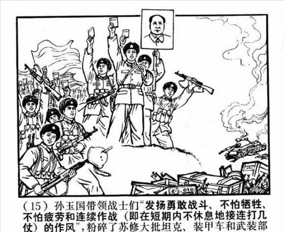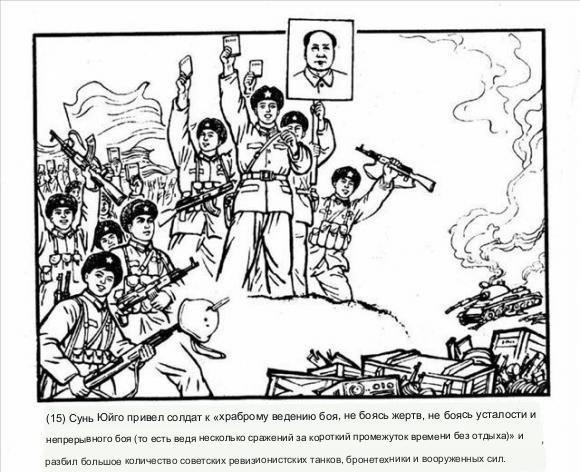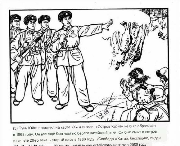Сначала сборище бородатых бродяг в дубленках пришли на китайскую землю, полезли в драку, а потом, собрав выбитые зубы, решили взять хитростью и начали переписывать историю. Когда этот номер не прошел, то поехали на китайских бойцов железными танками, но китайские бойцы с пулеметами и гранатолупами пожгли те танки, и так правда победила.