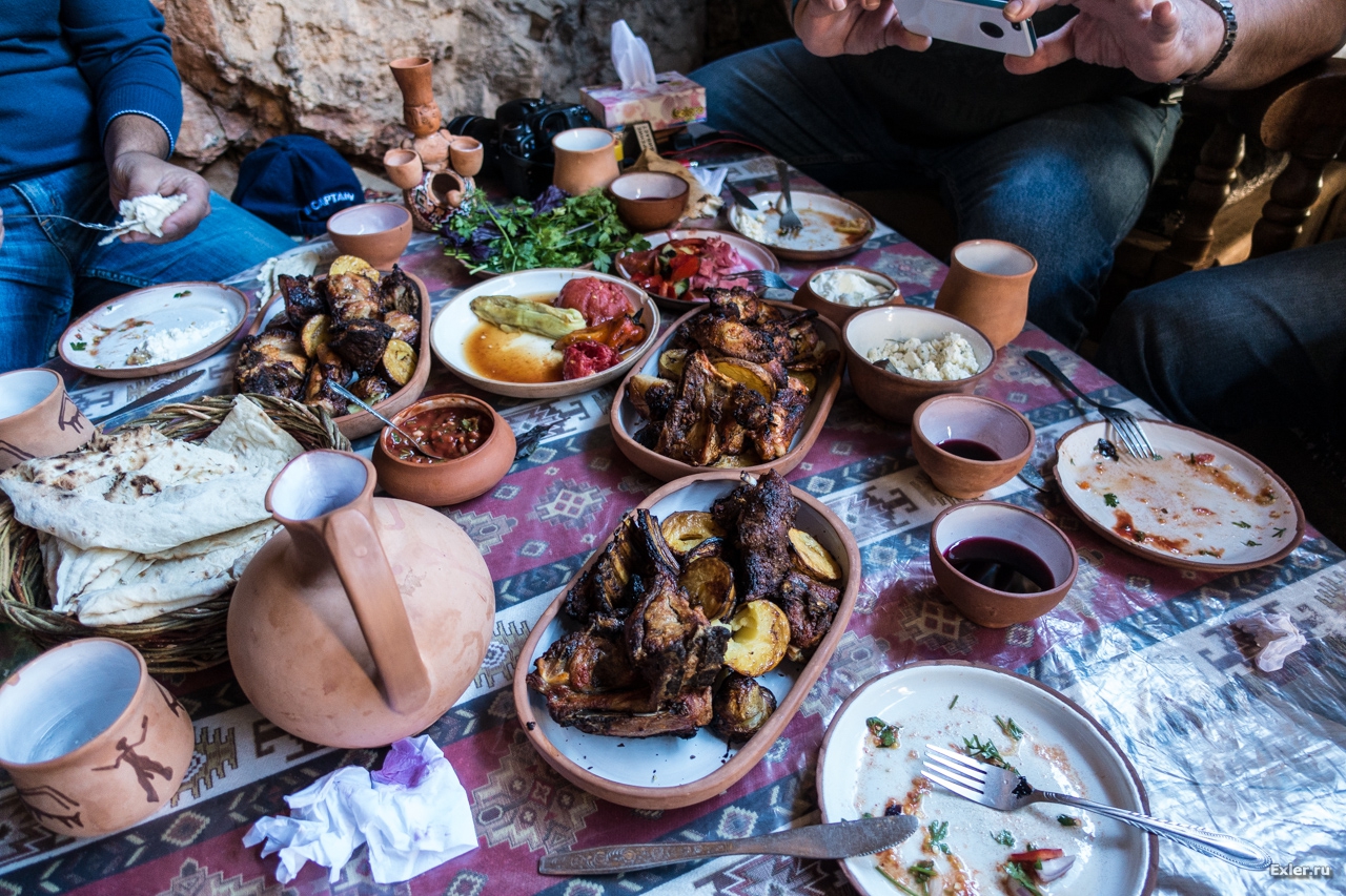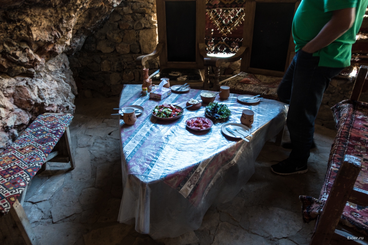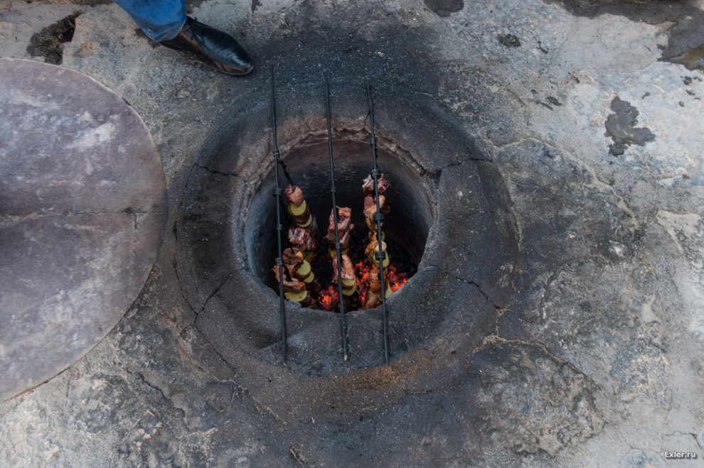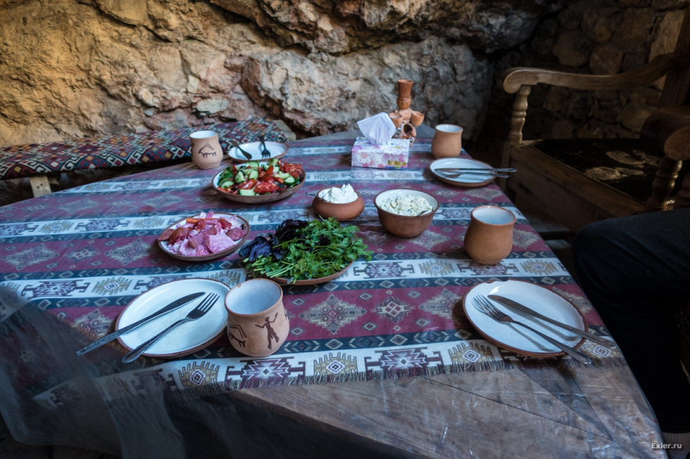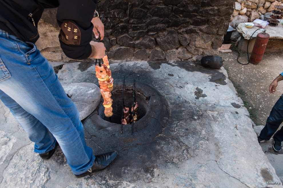 По дороге в монастырь Нораванк есть небольшое заведение, где делают шашлык в тандыре. Заведение фактически располагается в скале, ну и выглядит очень интересно.
