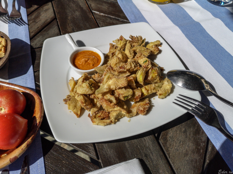 Сердцевинки артишоков в легком кляре - это самые вкусные артишоки из всех, что я ел в этих краях за семь лет. Артишоки хорошо приготовить трудно, в данном заведении этим искусством овладели на все сто - просто шикарно!