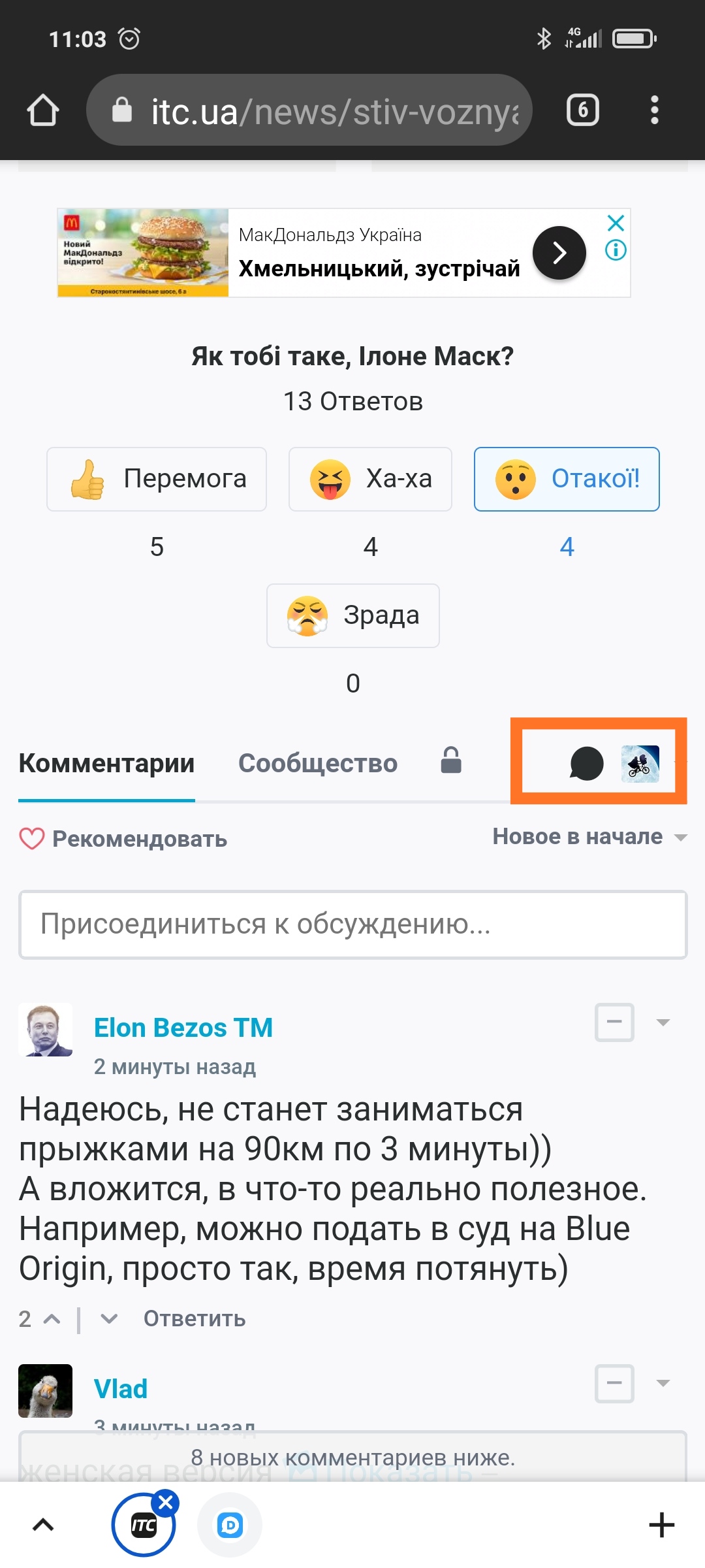 По просьбам трудящихся сделали возможность копировать ссылку на конкретный комментарий - появилась новая пиктограмма в конце. На данный момент это работает так: на пиктограмму с линком нужно нажать правой кнопкой мыши, и в контекстном меню выбрать "Копировать ссылку". Но сегодня в течение дня сделаем, чтобы ссылка автоматически копировалась в буфер обмена просто при нажатии на пиктограмму. (Кстати, этот фокус может пройти не во всех браузерах, но посмотрим.)