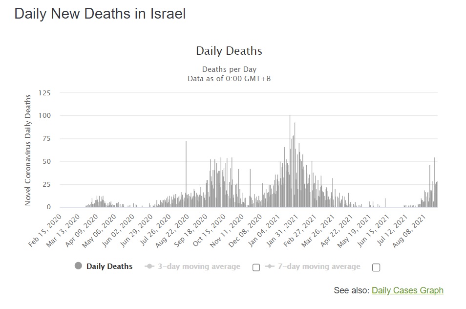 "Но теперь надежда угасает. Текущие показатели Израиля вызывают тревогу. Официальные данные показывают: около 60% людей, госпитализированных 15 августа с заражением коронавирусом, были привиты."