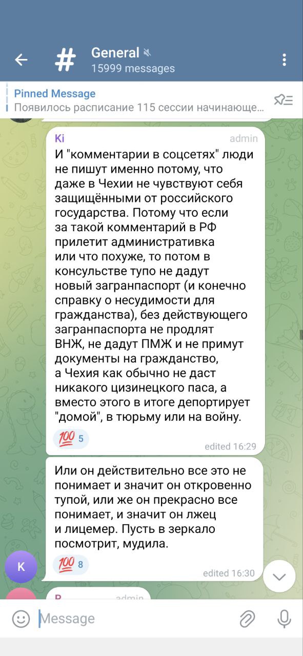 прикрепляю скриншот из крупного чата россиян в Чехии