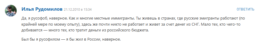 По даже не моему же мнению в Чехии (где я живу) среди российских "ИТ-экспатов" (любят себя так называть, чтобы отнекиваться от изучения языка, интеграции и пр