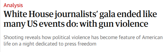 Во время  приема Ассоциации корреспондентов при Белом доме, на котором присутствовал президент США, произошла стрельба. Первых лиц государства эвакуировали, мероприятие отложено на месяц. Предполагаемый стрелок задержан, его мотивы пока неизвестны.
