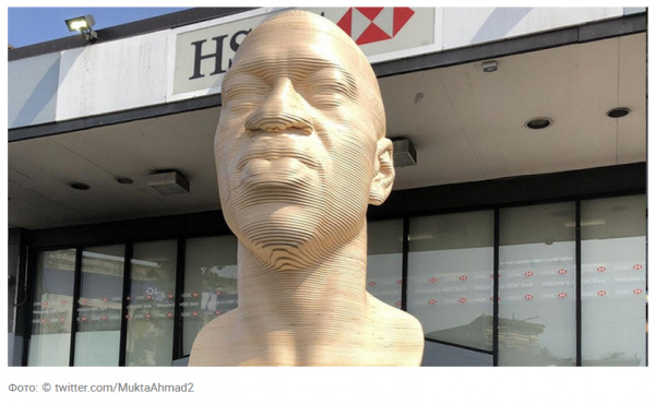 Великому гуманисту и просветителю Джорджу Флойду установили очередной памятник. Причем на этот раз бюст этому достойнейшему человеку изваяли из белого камня.