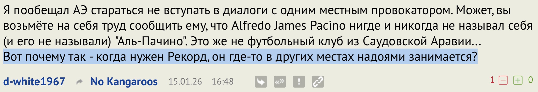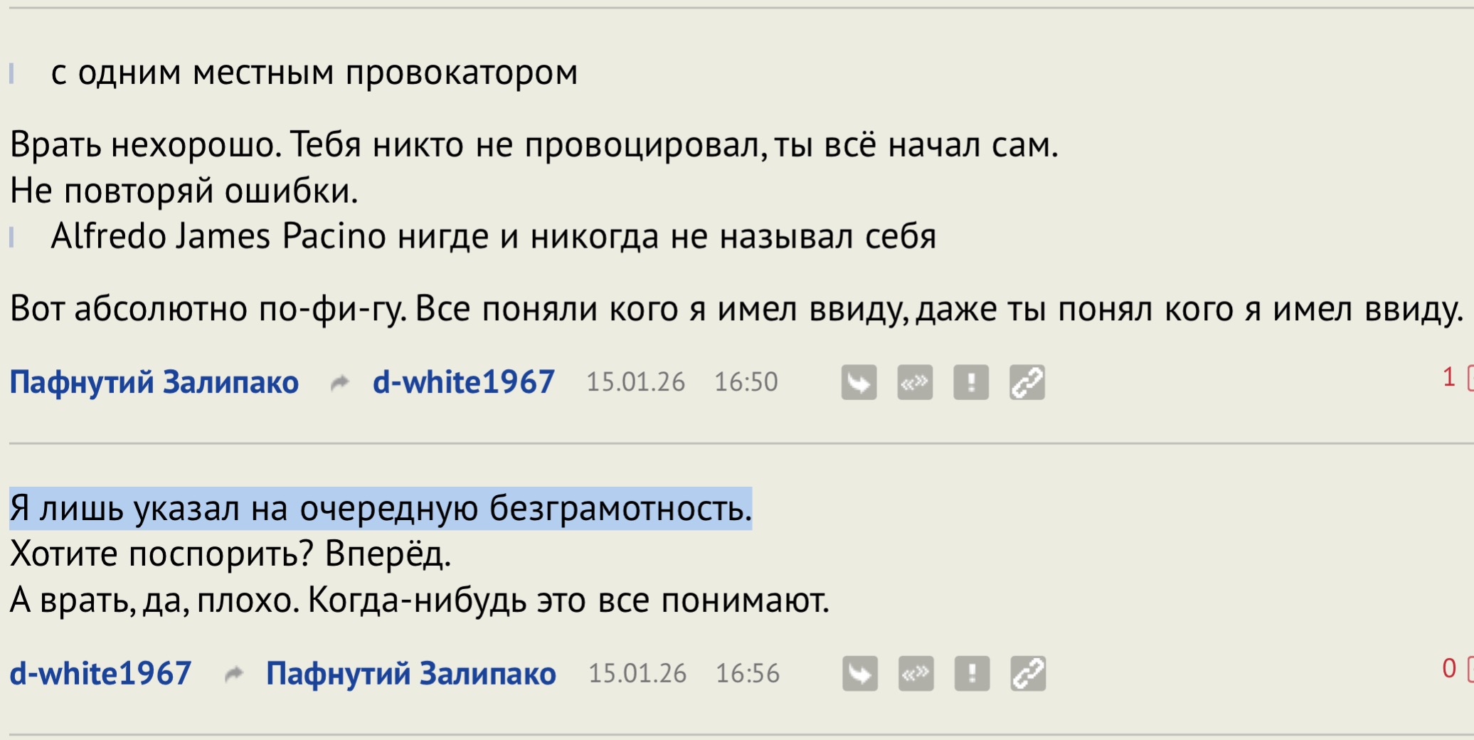 Кстати, почти всегда они так же ведут себя под любым возражением нашему Боре. Я ни на что не намекаю, конечно же.