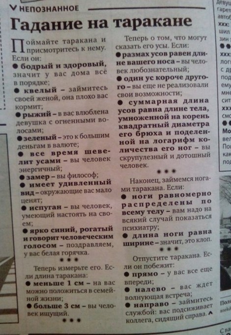 Старинное русское гадание на таракане. Вот прям рекомендую.