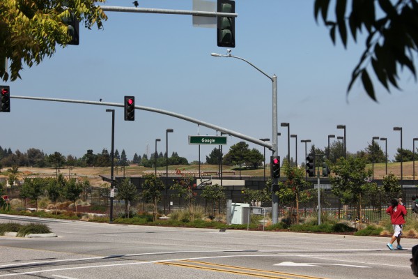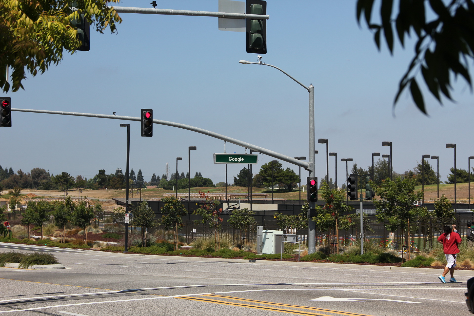При подъезде сразу становится понятно, что Google где-то рядом. Кстати, правее расположено футбольное поле, принадлежащее компании - там проходят матчи.