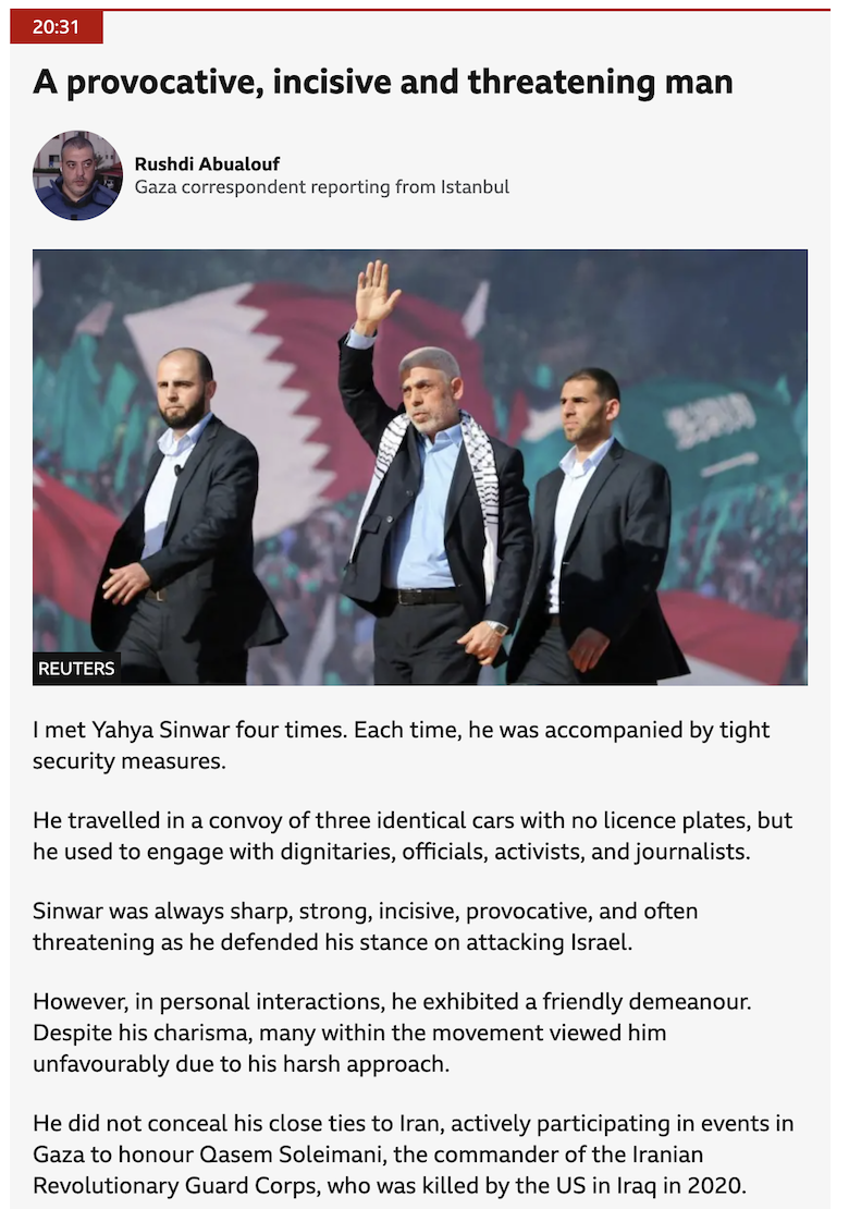 Итай Блюменталь (11-й канал) сообщает, что трое ликвидированных, включая, вероятно, Синвара, имели при себе поддельные документы и крупные суммы денег. По всей видимости, они пытались сбежать в Египет.