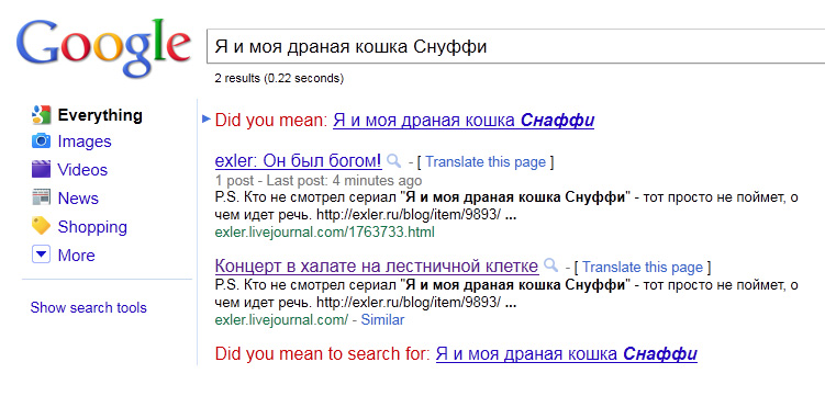 Upd: Я офигеваю от Google. Прошло ровно четыре минуты с публикации поста - и уже. Сейчас, когда вы читаете, уже не четыре минуты. Но я зафиксировал. Он с моего сайта и трансляции блога вообще никогда не уходит, что ли? Потрясно! Я впечатлен!