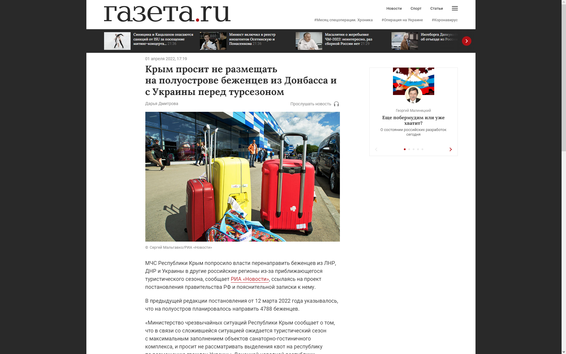"Крым просит не размещать на полуострове беженцев из Донбасса и с Украины перед турсезоном"