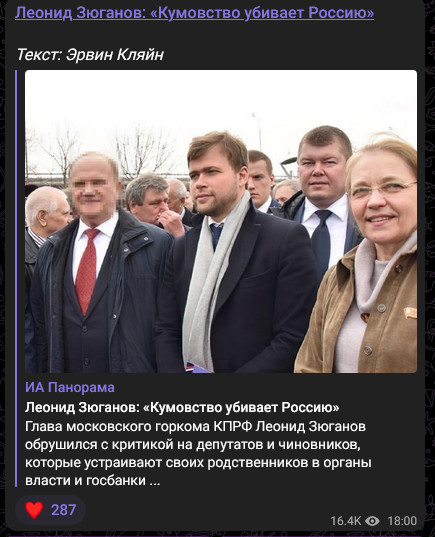 Не Зюганова, а Сурайкина - КПКР это правительственный фейк на КПРФ. Специально для оттягивания поддержки.