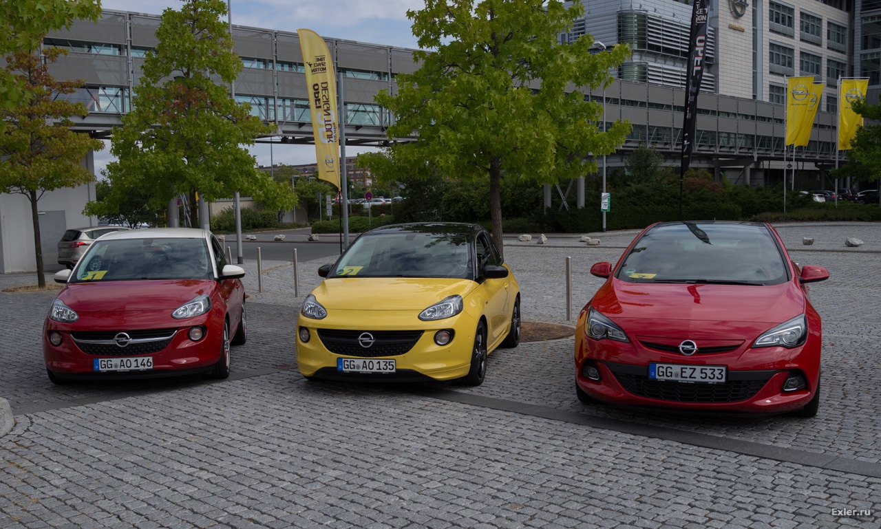 Для тест-драйва в Opel приготовили четыре модели. Обычную Opel Astra, спортивный трехдверный хэтчбек Opel Astra GTC, семейную Opel Zafira и городской фан-кар Opel Adam - эта модель была в двух цветовых оформлениях.