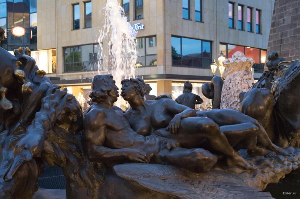 На беду мужичка мимо проходил известный скульптор по фамилии, которую я не запомнил. Он увидел эту дивную картину и сделал в Нюрнберге фонтан в виде мужика с двумя гусями. Когда мужик в очередной раз пришел в Нюрнберг на рынок, то с негодованием увидел свое изображение и после этого много лет судился со скульптором по поводу нарушения авторских прав. Вот такая трогательная история.