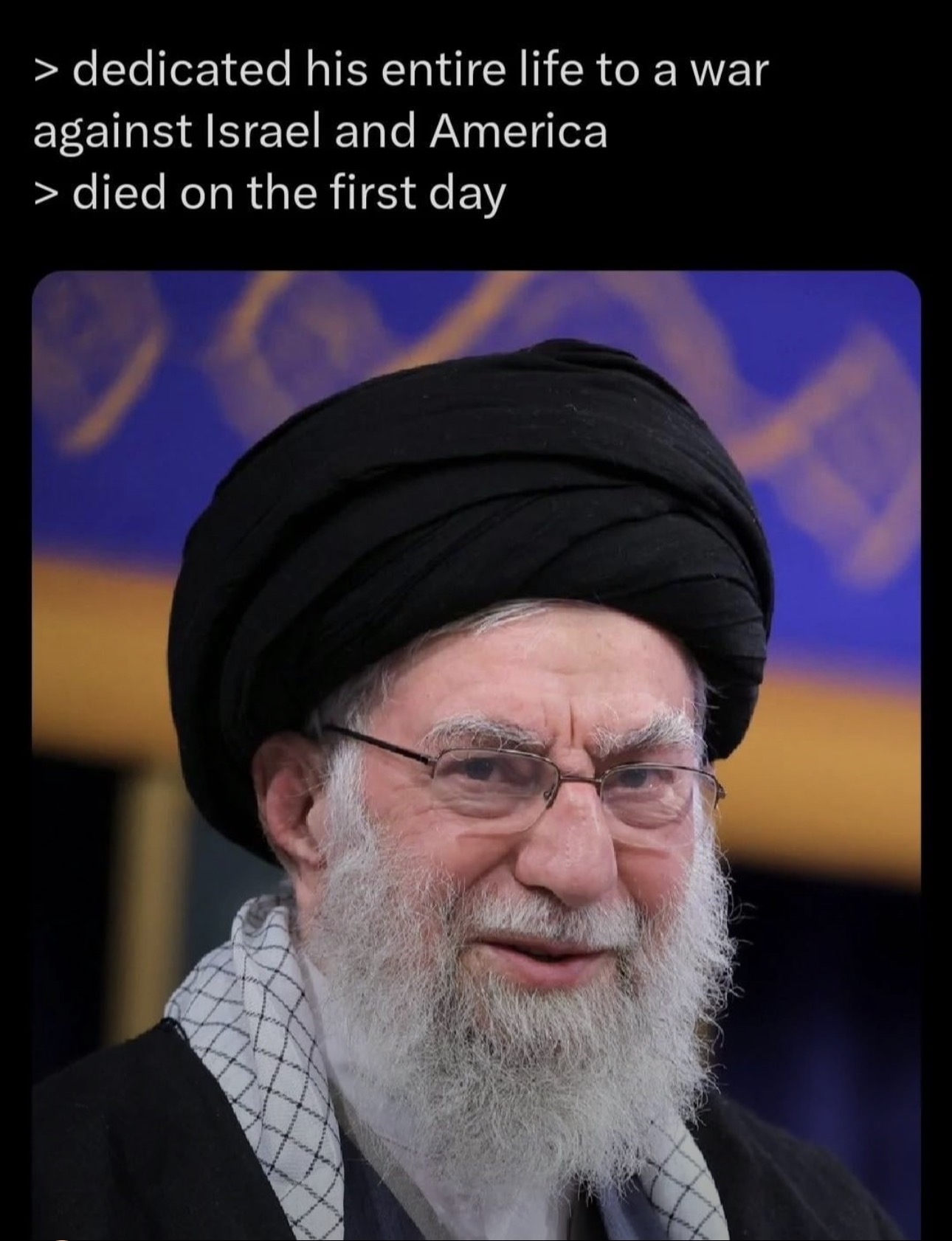 Честно говоря, несмотря на радость от ликвидации верхушки иранского руководства, встаёт естественный вопрос: И чо? Ну, побомбили Иран (снова), ну, уничтожили у них стотыщмильонов ракет, установок и объектов... Но режим как был, так и есть, людей-функций быстро заменят, пусть даже погрызутся кандидаты между собой пару месяцев... Без свержения режима, все эти достижения ничего не стоят, а начинать сухопутную операцию никто не хочет, увы. 🤷