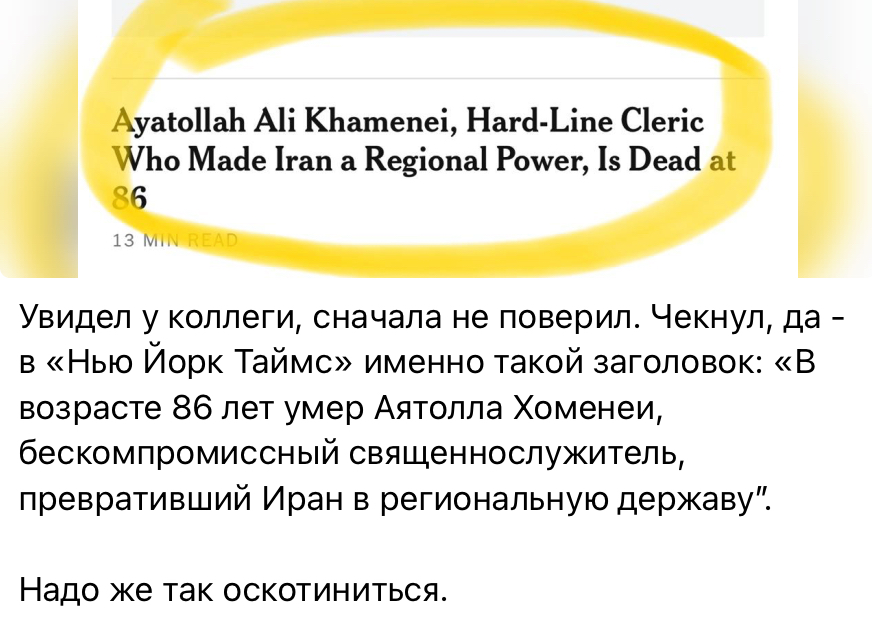 В издании The New York Times всякие подробности (paywall) операции по ликвидации Хаменеи.