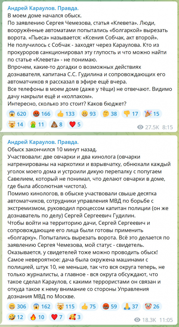 Журналист Андрей Караулов пишет в своем телеграм-канале.
