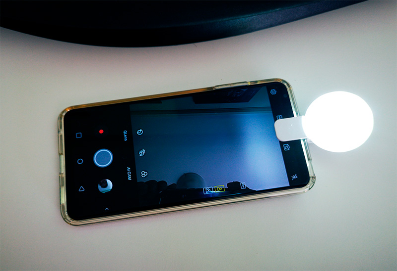 А что - прикольная штука. Заряжается через USB, Цепляется хоть для селфи, хоть для съемки тыловой камерой. Имеет три режима освещения. Довольно яркая.