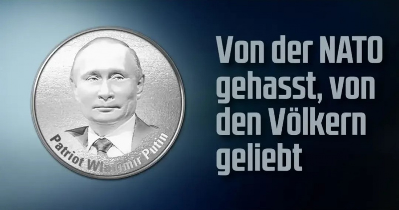 Он враг Запада, днем и ночью они натравливают на него: Владимир Путин. Поскольку российский патриот противостоит военным авантюристам НАТО, их ненависть не знает границ. Достаточный повод для нас, чтобы удостоить Путина новой серебряной медалью. Это предприятие не без риска даже для COMPACT, но мы не дадимся запугать в нашем стремлении к свободе народов. Посмотрите на эту прекрасную вещь здесь и закажите ее еще сегодня!