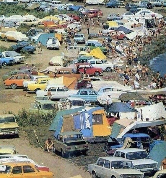 Машины, палатки, полнейшая антисанитария, ближайший водоем, в котором понятно что предельно зашкаливало, но тем не менее было весело, и многие этот отдых потом вспоминали с удовольствием, потому что это был какой-никакой, а отдых, ведь других вариантов было очень немного.