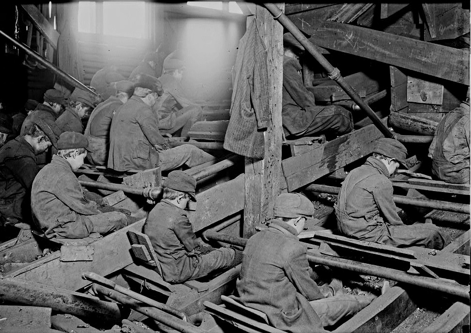 Until about 1900, nearly all coal breaking facilities in the United States were labor-intensive. The removal of impurities was done by hand, usually by breaker boys between the ages of 8 and 12 years old. The use of breaker boys began around 1866. For 10 hours a day, six days a week, breaker boys would sit on wooden seats, perched over the chutes and conveyor belts, picking slate and other impurities out of the coal.