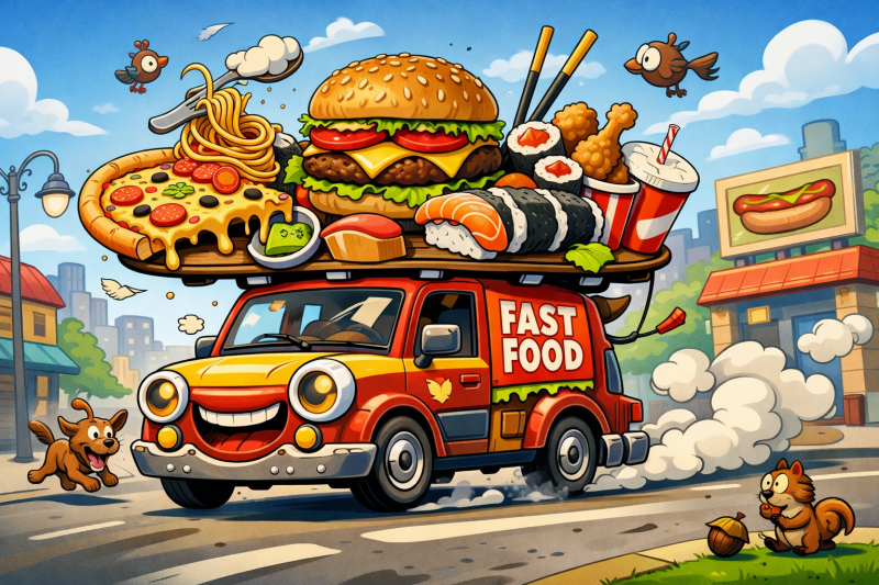 У меня ближайший ресторан, который готовит съедобную еду - в получасе ходьбы от дома. Когда у меня нет времени приготовить еду - я её заказываю, поскольку времени дойти до ресторана и обратно у меня тем более не хватит.