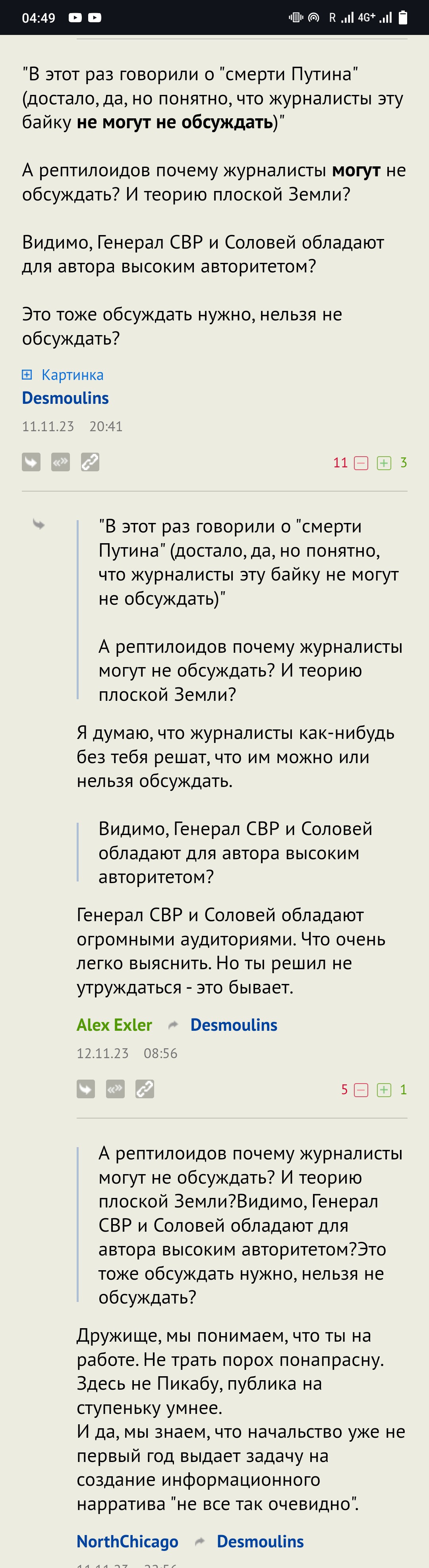 А ещё Соловей любит цитировать любой источник, который хоть сколько-нибудь поддерживает его россказни: анализ внешности двойников японским телеканалом, анализ голосов президента и двойника специалистом по искусственному интеллекту, и прочие сомнительные статьи и заметки. А мог бы не обращать на них внимания и спокойно ждать наступления событий, о которых он любит рассказывать.