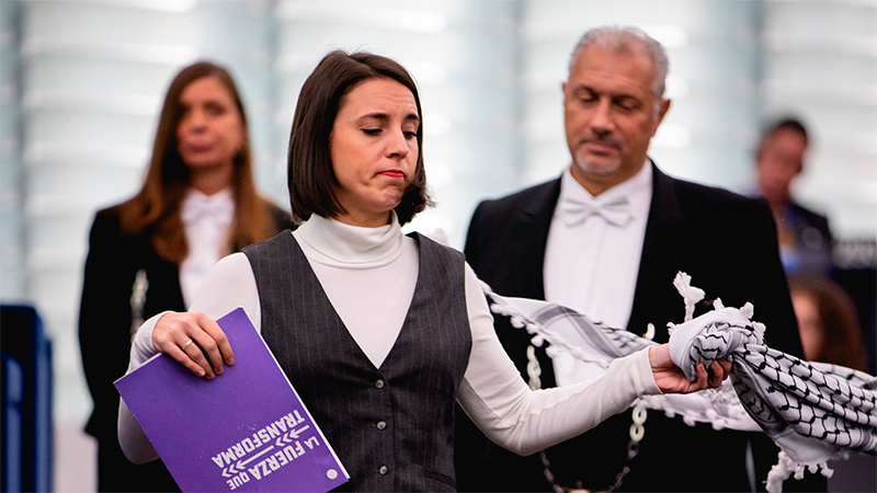 Вице-президент Европарламента Кристель Шальдемозе, представляющая датских социалистов, потребовала от Монтеро снять платок, потому что в Европарламенте запрещены подобные демонстрации. Монтеро отказалась это сделать, после чего ей сказали, что тогда ее лишат слова.