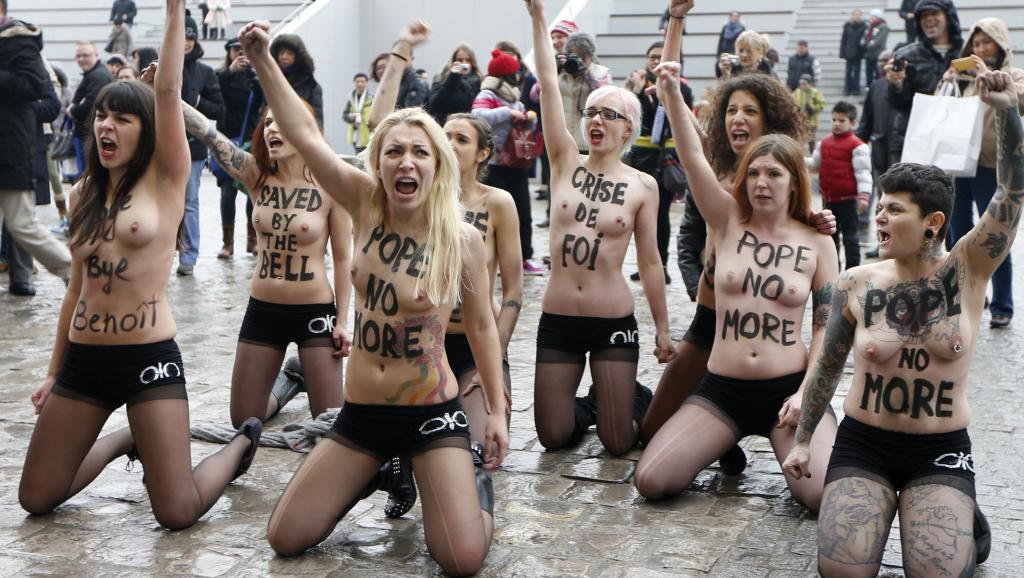 Протестующие были вынуждены отвернуться и разойтись. Им запрещено смотреть на незнакомых голых женщин. В разгоне протестующих также участвовала конная полиция.