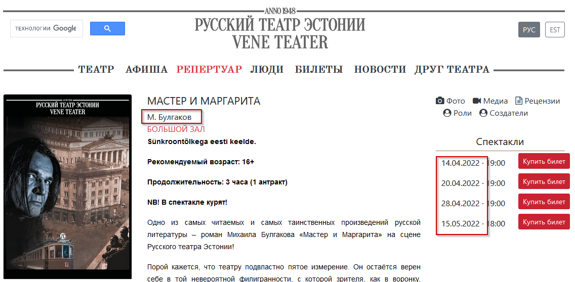 Русский театр в Таллинне. Ригу я уже привел как пример.